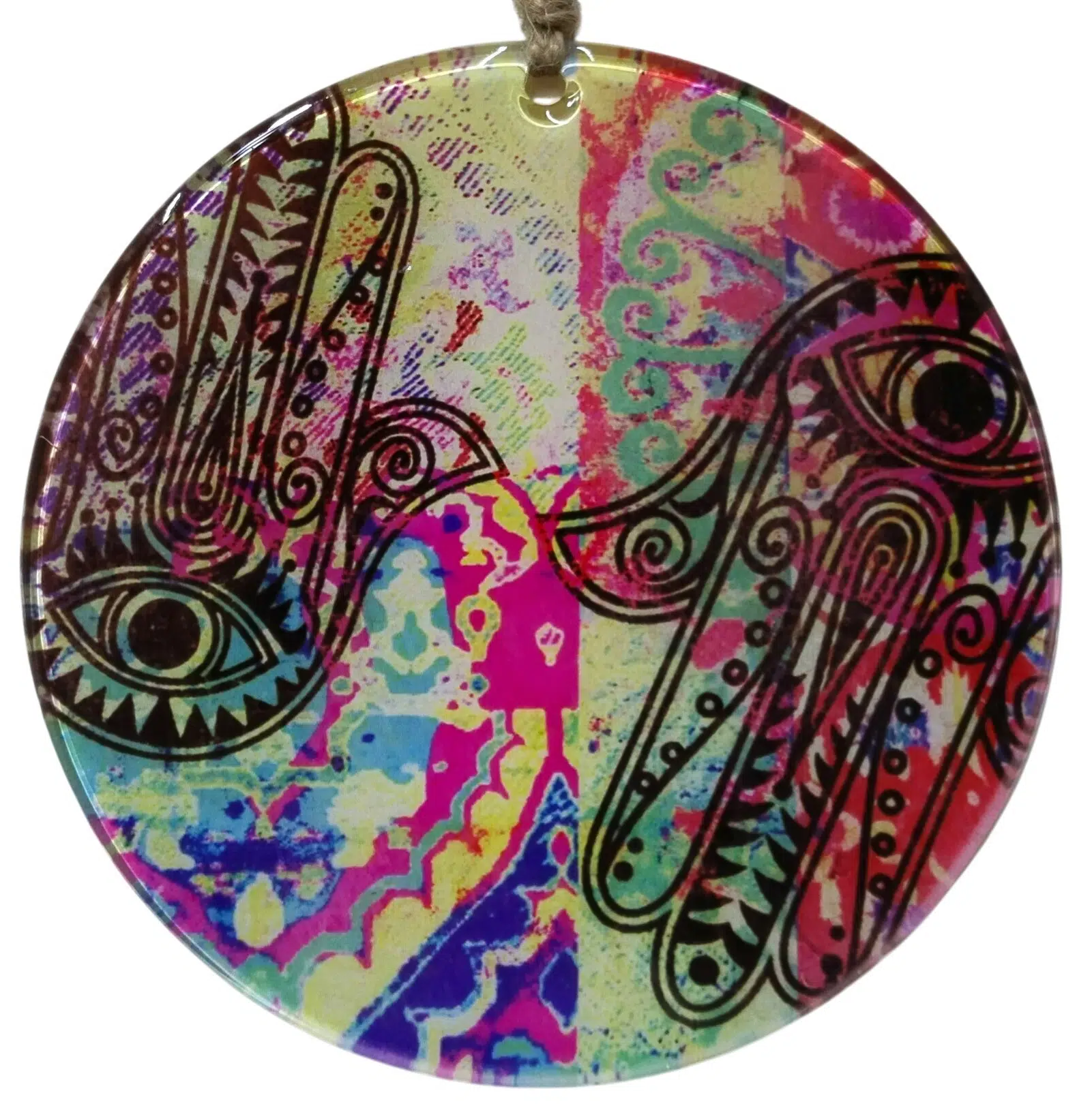 Yaşam alanlarınıza hem sanatsal bir dokunuş hem de koruyucu bir enerji katmaya ne dersiniz? Yüksek kaliteli camdan üretilen bu şık duvar süsü, canlı renkleri ve kadim "Fatma Ana Eli" sembolü ile evinizin en sevilen parçası olacak.