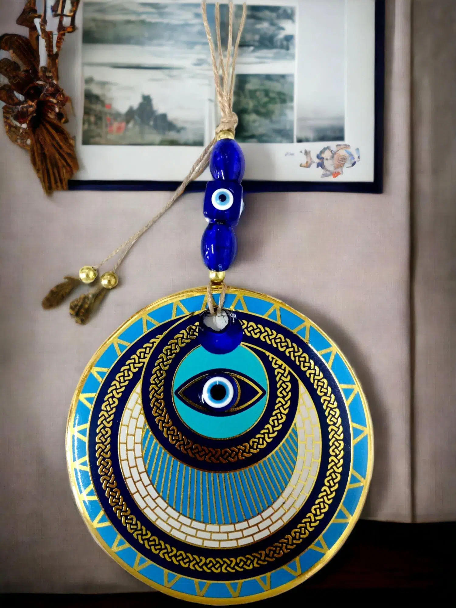 | Etiketler | Altın İşlemeli Halka Model Nazar Boncuk Gözlü Duvar Süsü Zincir Duvar Dekoru |