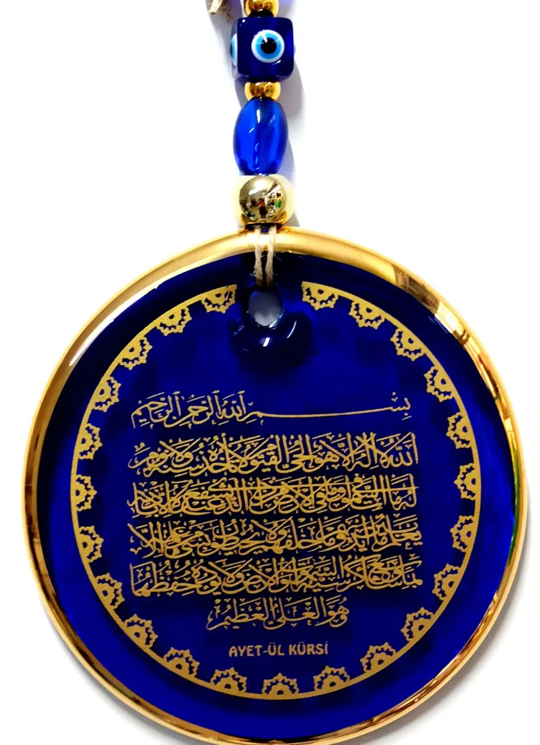 | Etiketler | Altın Yaldızlı Ayetel Kürsi Yazılı Nazar Boncuklu Duvar Süsü Hediyelik Eşya El Yapımı Dekoratif Süs |
