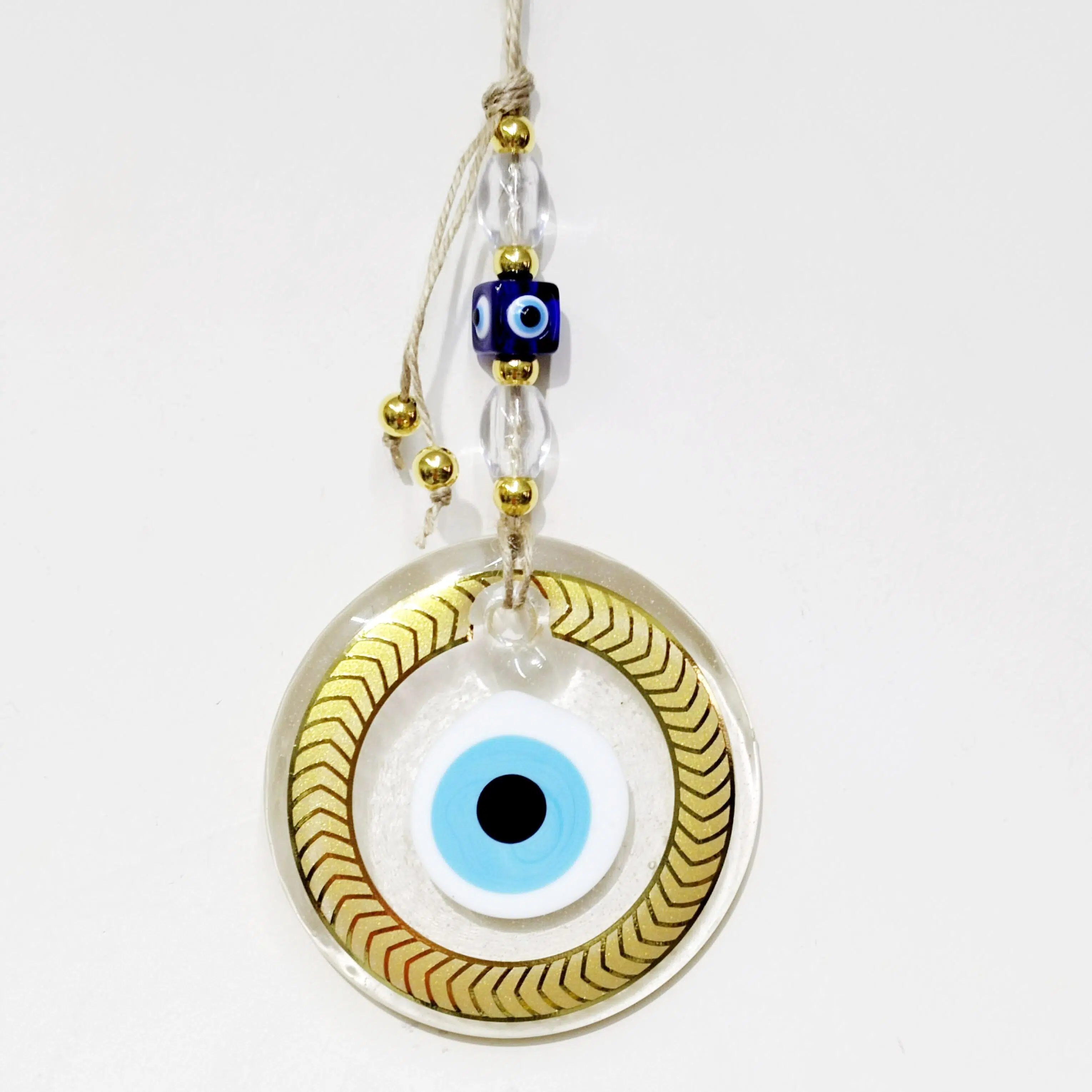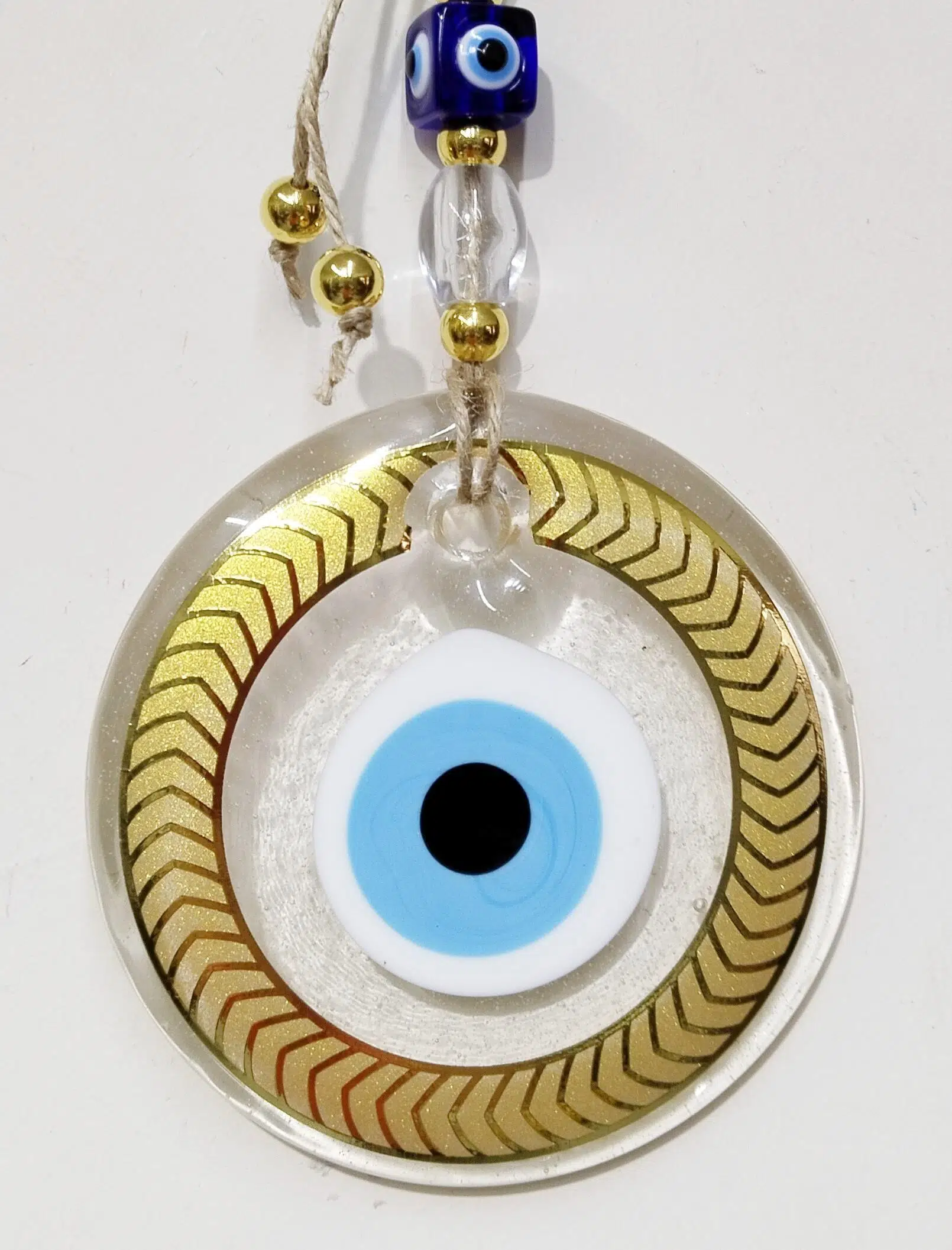 Altın Yaldızlı Nazar Boncuklu Şeffaf Cam Duvar Süsü