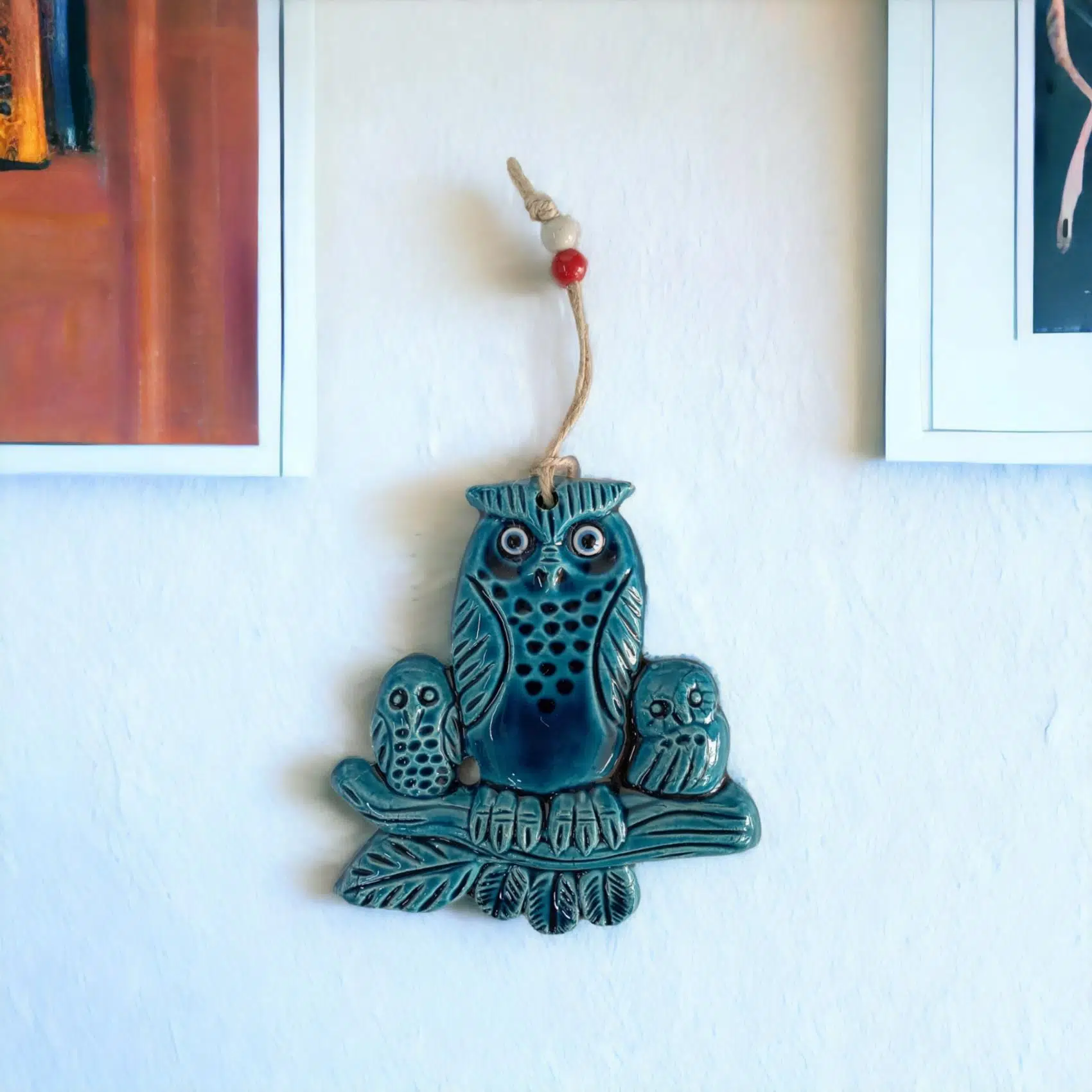 Baykuş Ailesi Motifli Seramik Baykuş Duvar Süsü Duvar Dekoru