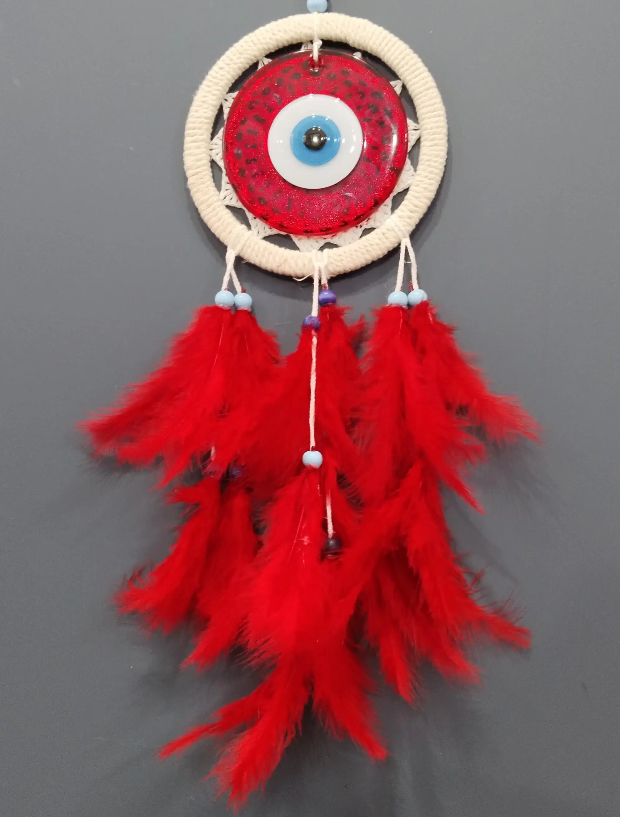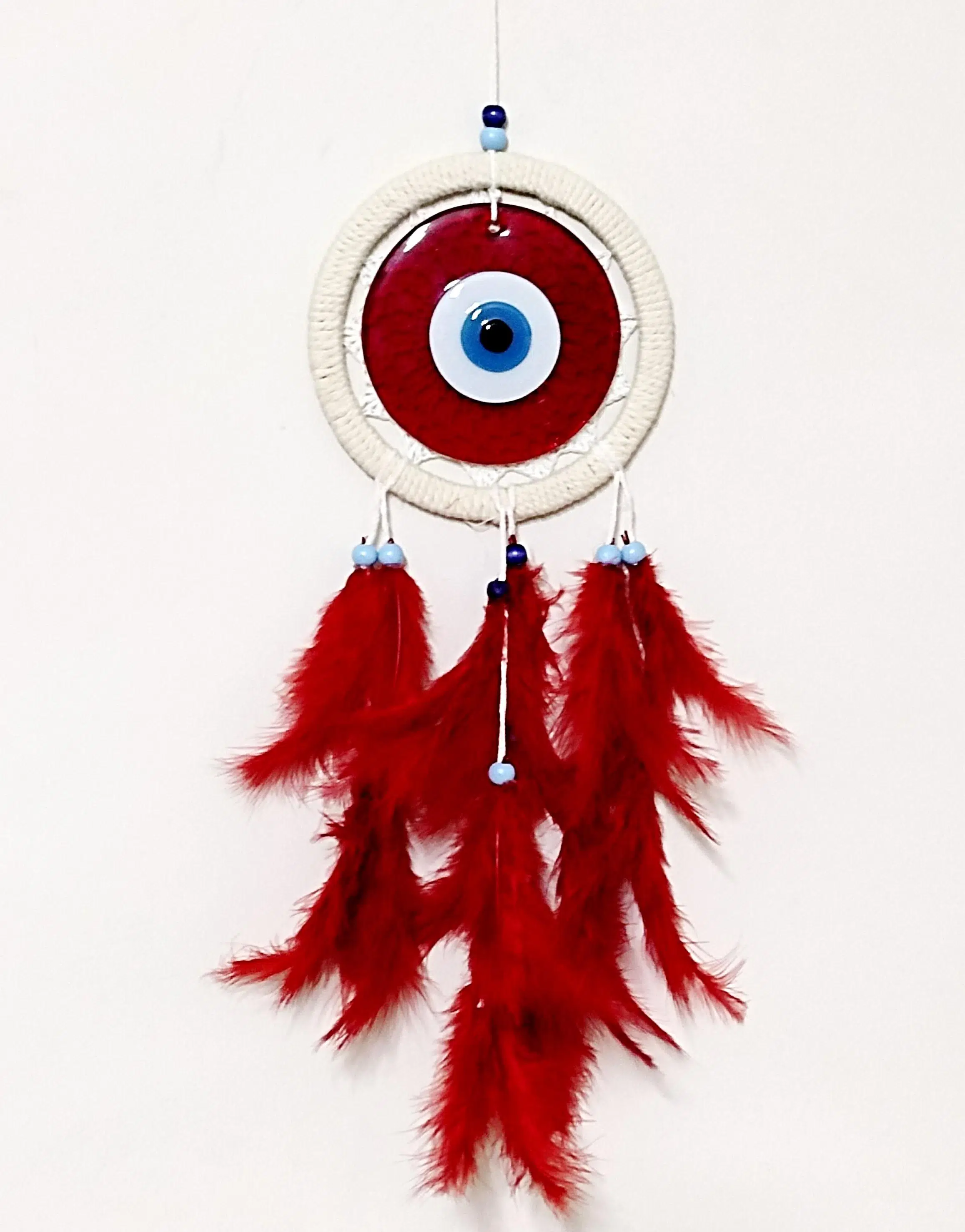 | Etiketler | Cam Nazar Boncuklu Kırmızı Kuş Tüylü Dream Catcher Düş Kapanı Duvar Süsü |