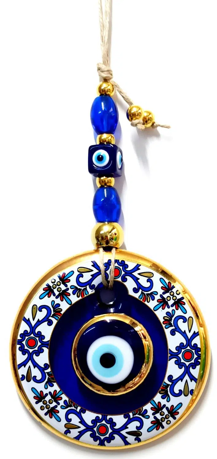| Etiketler | Çini Desenli Nazar Boncuklu Duvar Süsü, Cam El İşçiliği Hediyelik Eşya Altın Yaldızlı Nazar Boncuğu |
