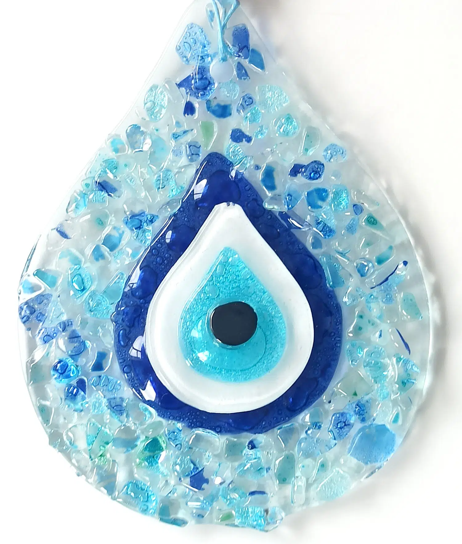 | Etiketler | Damla Modeli Duvar Dekoru Nazar Boncuklu Kesme Cam El Yapımı Duvar Süsü |