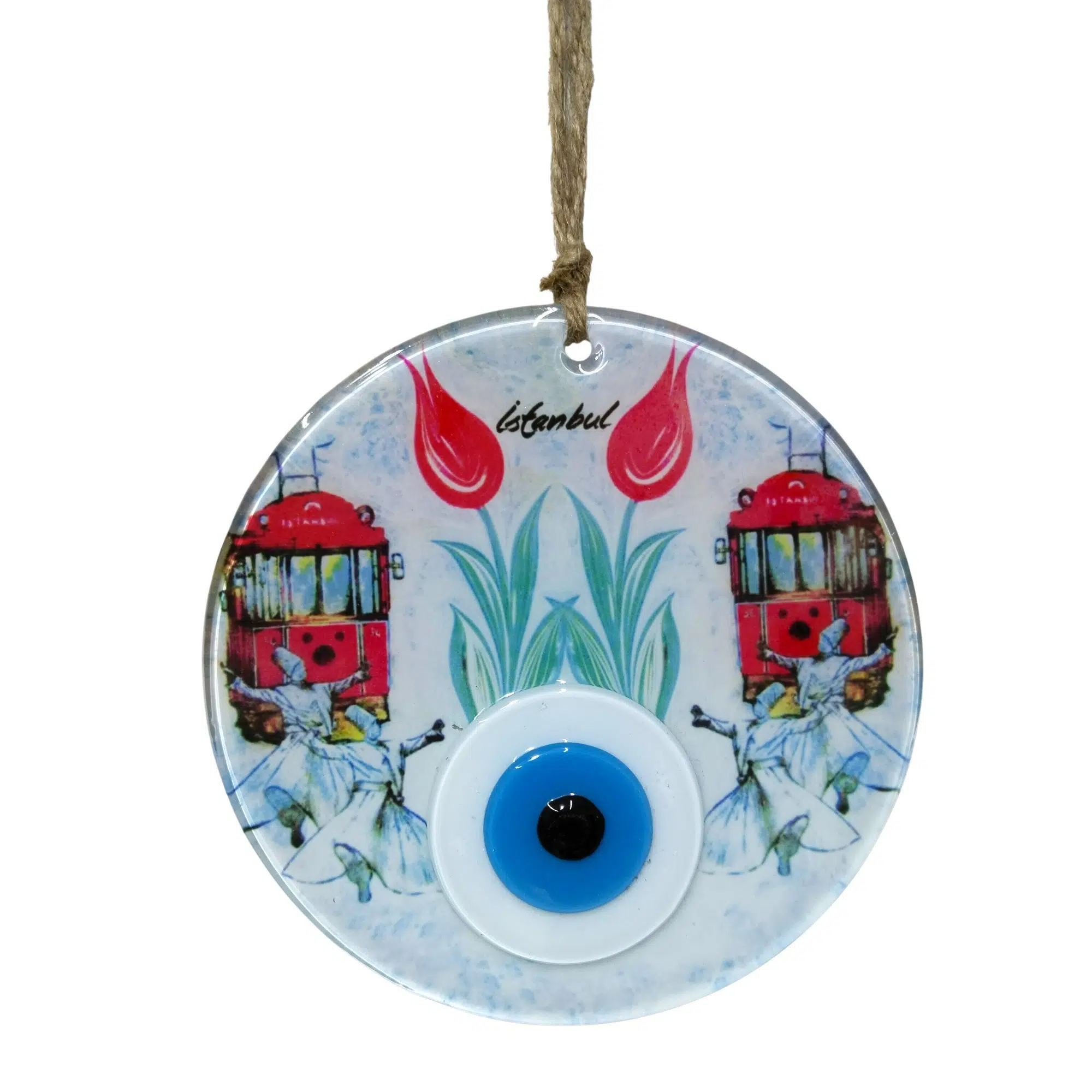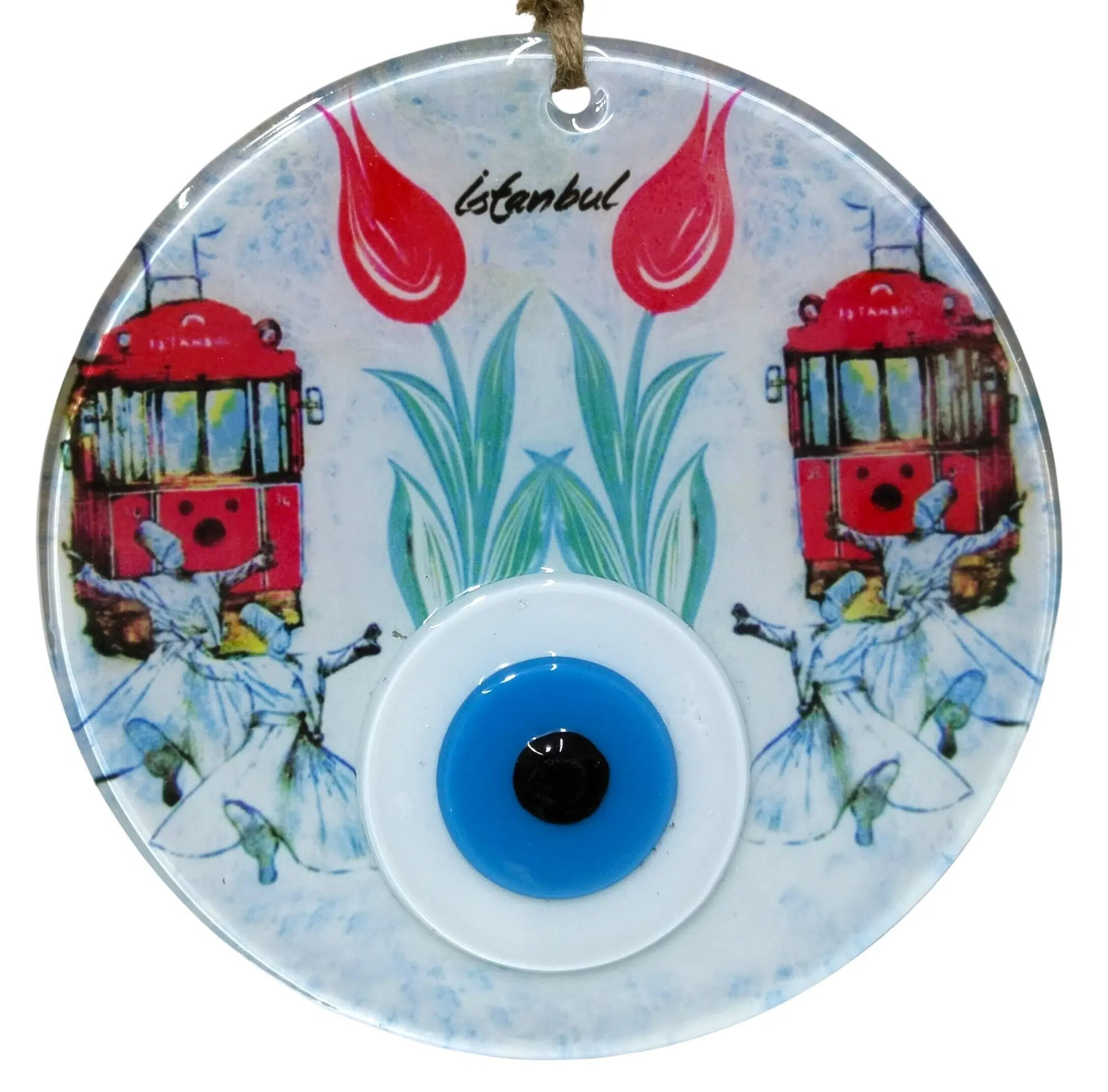 | Etiketler | Dekoratif İstanbul Serisi Cam Nazar Boncuğu Duvar Süsü - Semazen ve Tramvay Figürlü |