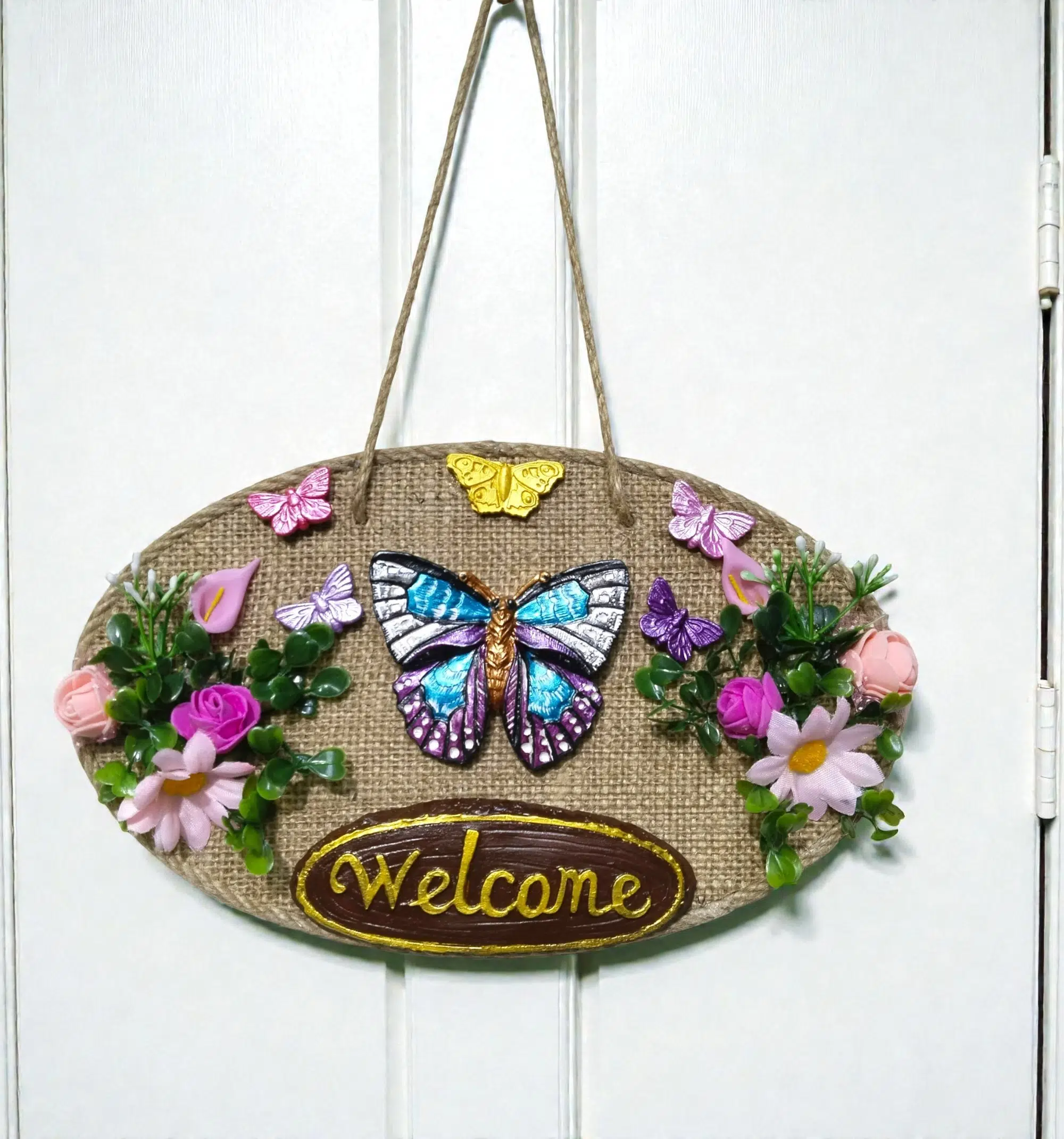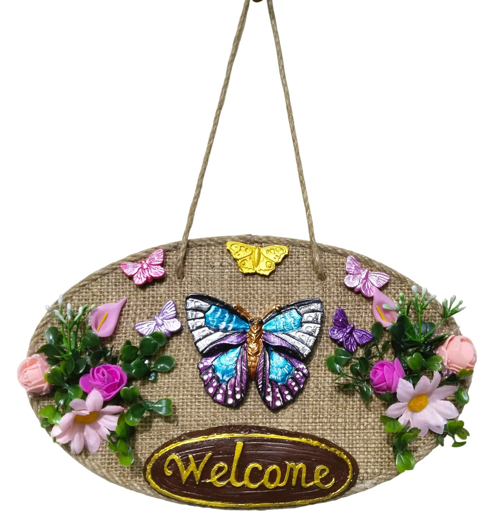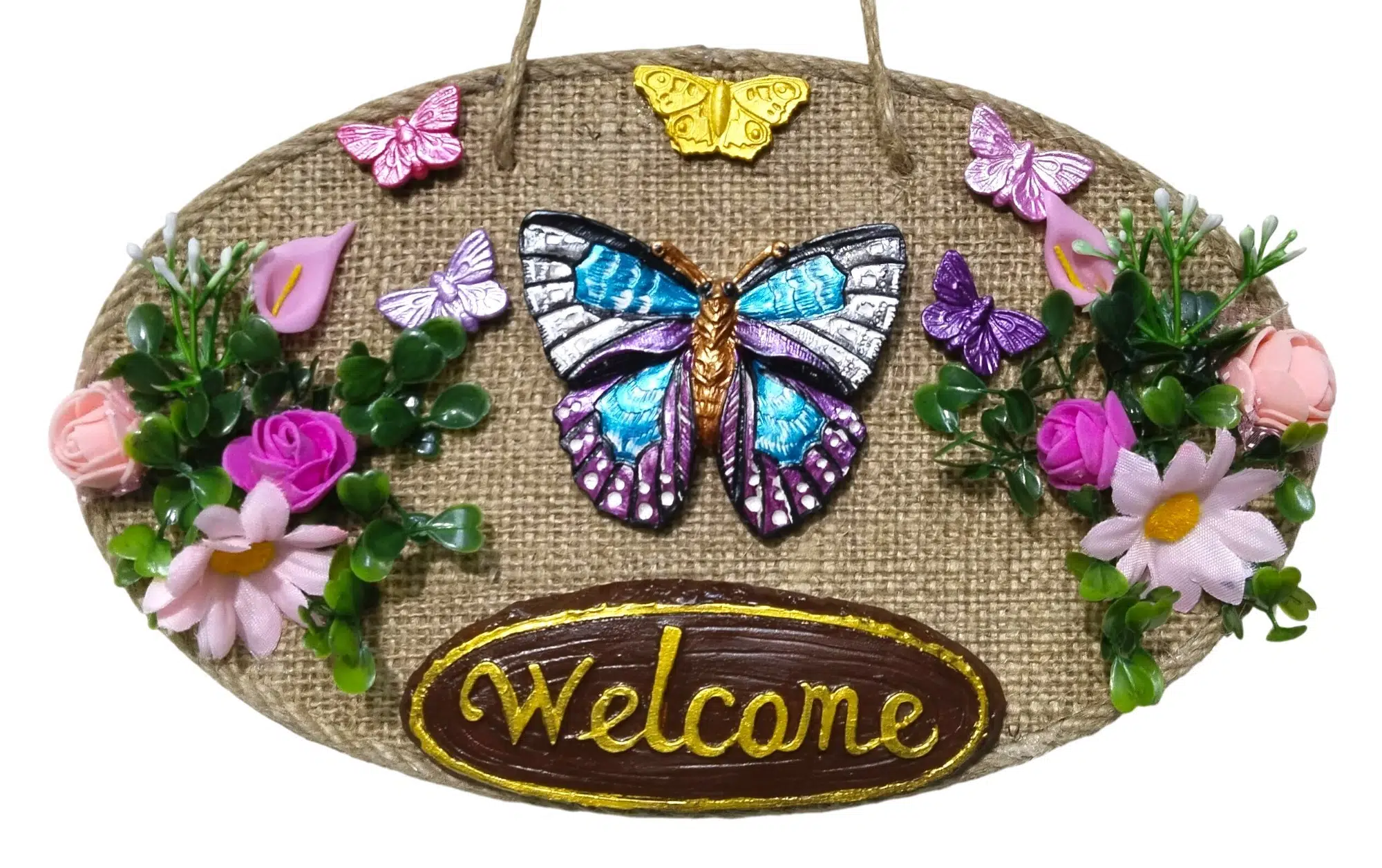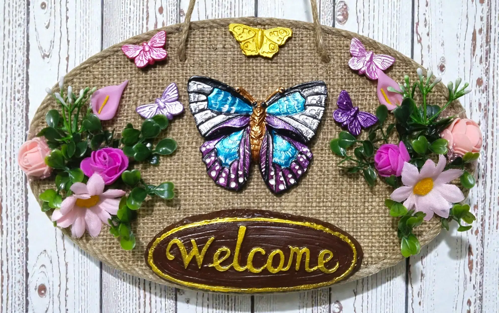 | Etiketler | El Yapımı Jüt Kumaşlı Kelebek ve Çiçek Detaylı "Welcome" Kapı Süsü - Askılı Welcome Panosu |