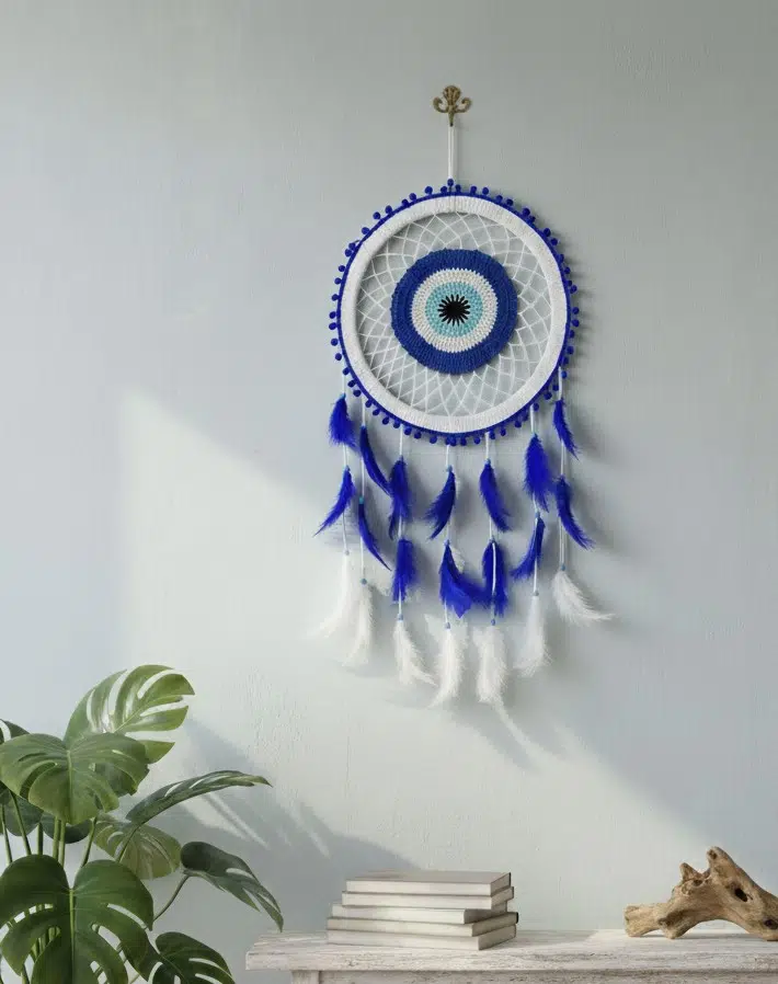 El Yapımı Nazar Boncuklu Rüya Yakalayıcı – Koruma ve Huzur Dolu Rüyalar İçin!