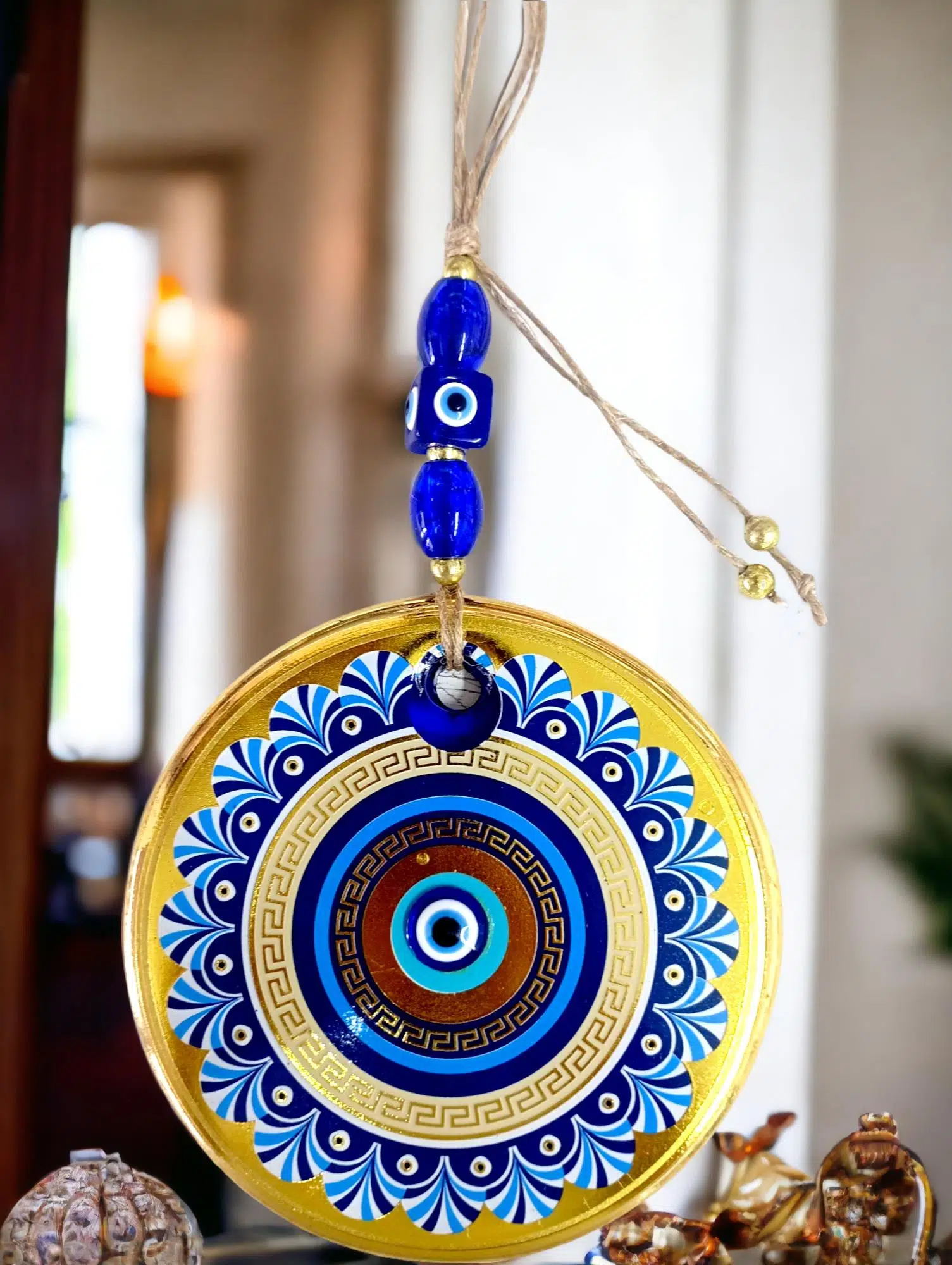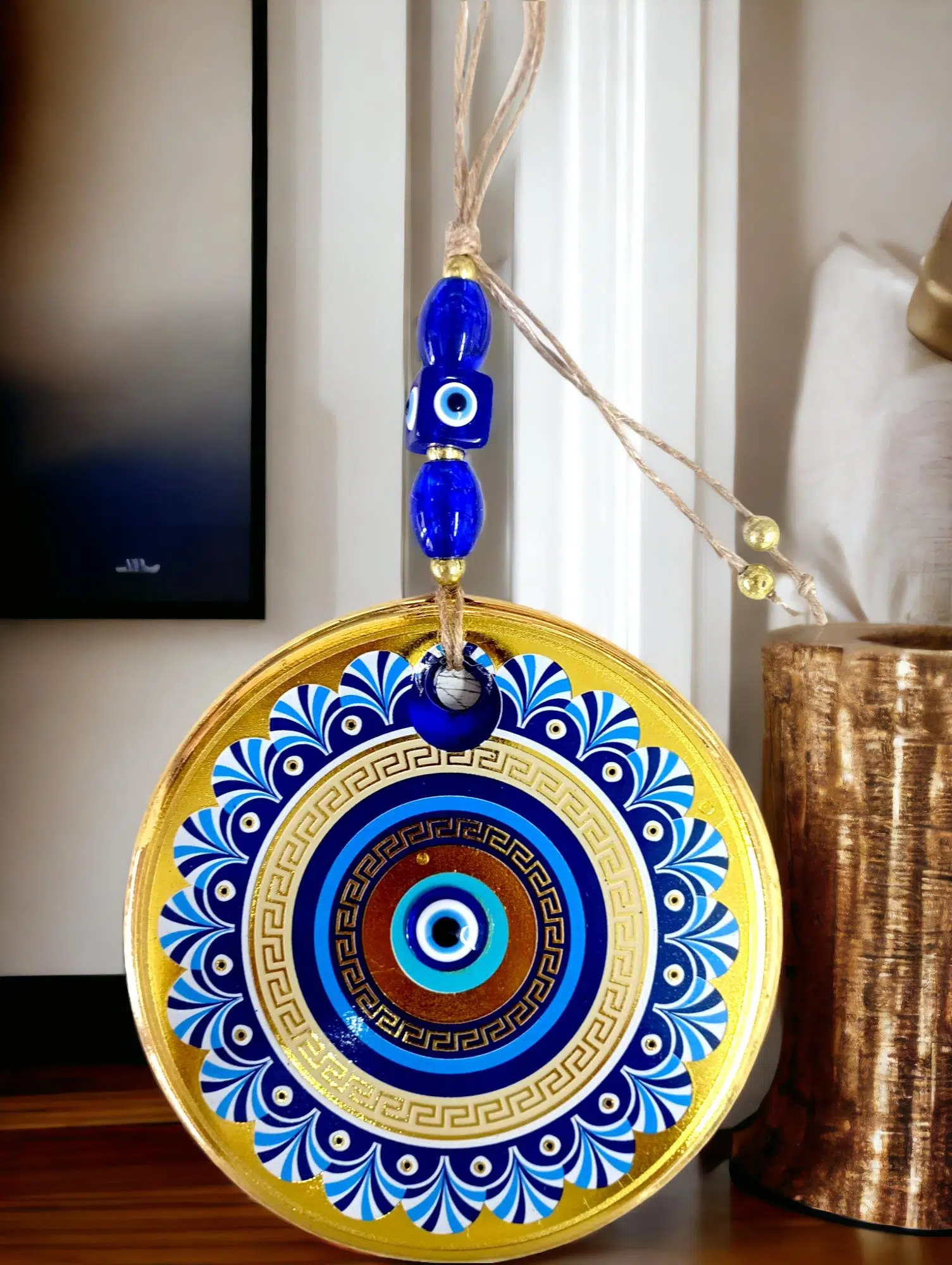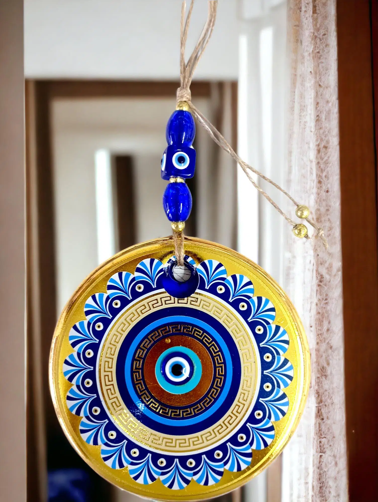 | Etiketler | Gold Cam Üzeri Mavi Motifli Nazar Boncuklu Göz Detaylı Duvar Süsü |