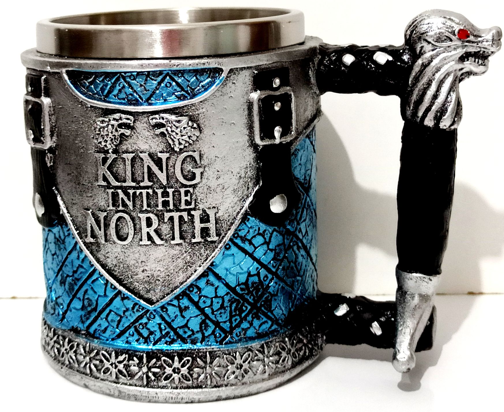 King in the North kupamızın içi paslanmaz çelikten üretilmiştir. Ürünümüz kulp kısmı hariç 9,50 santimetre eninde 13 santimetre boyundadır. Tasarım harikası kupa bardağımızı ister kendiniz için, isterseniz sevdiklerinize hediye etmek için tercih edebilirsiniz.