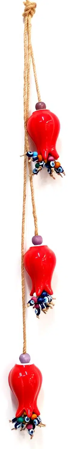 Lale çiçekli kapı ve duvar süsümüz halat ip ve boncuklarla süslenmiştir. Ürünümüz 8 x 59 santimetre ölçülerindedir. Bereketli ve şık mekanlar için özel tasarım olarak üretilmiştir.