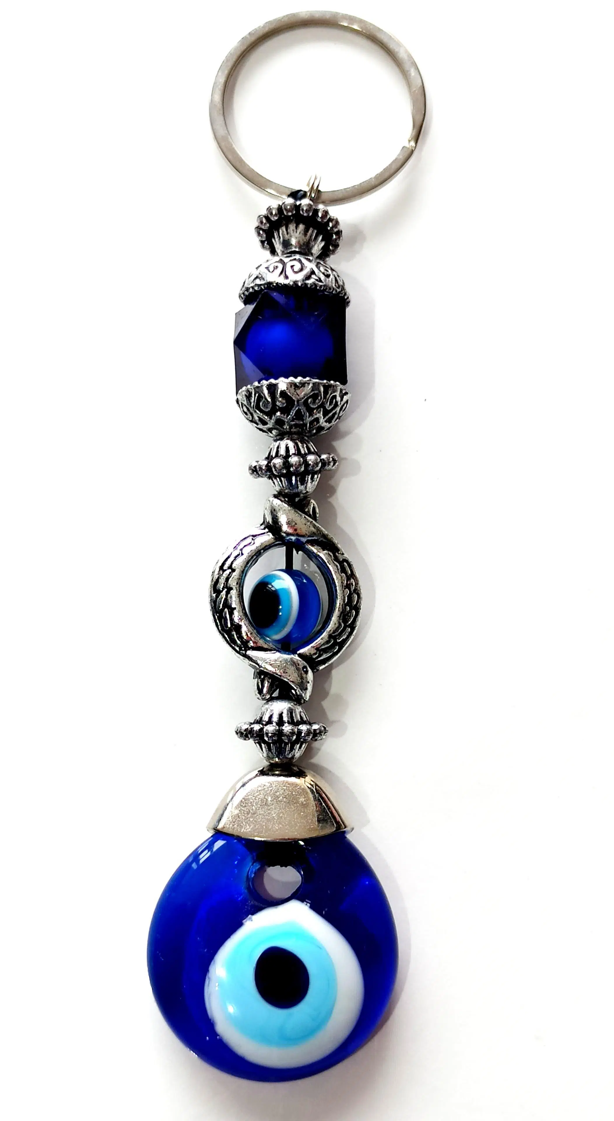 Mavi Kristal Taşlı Nazar Boncuklu Anahtarlık