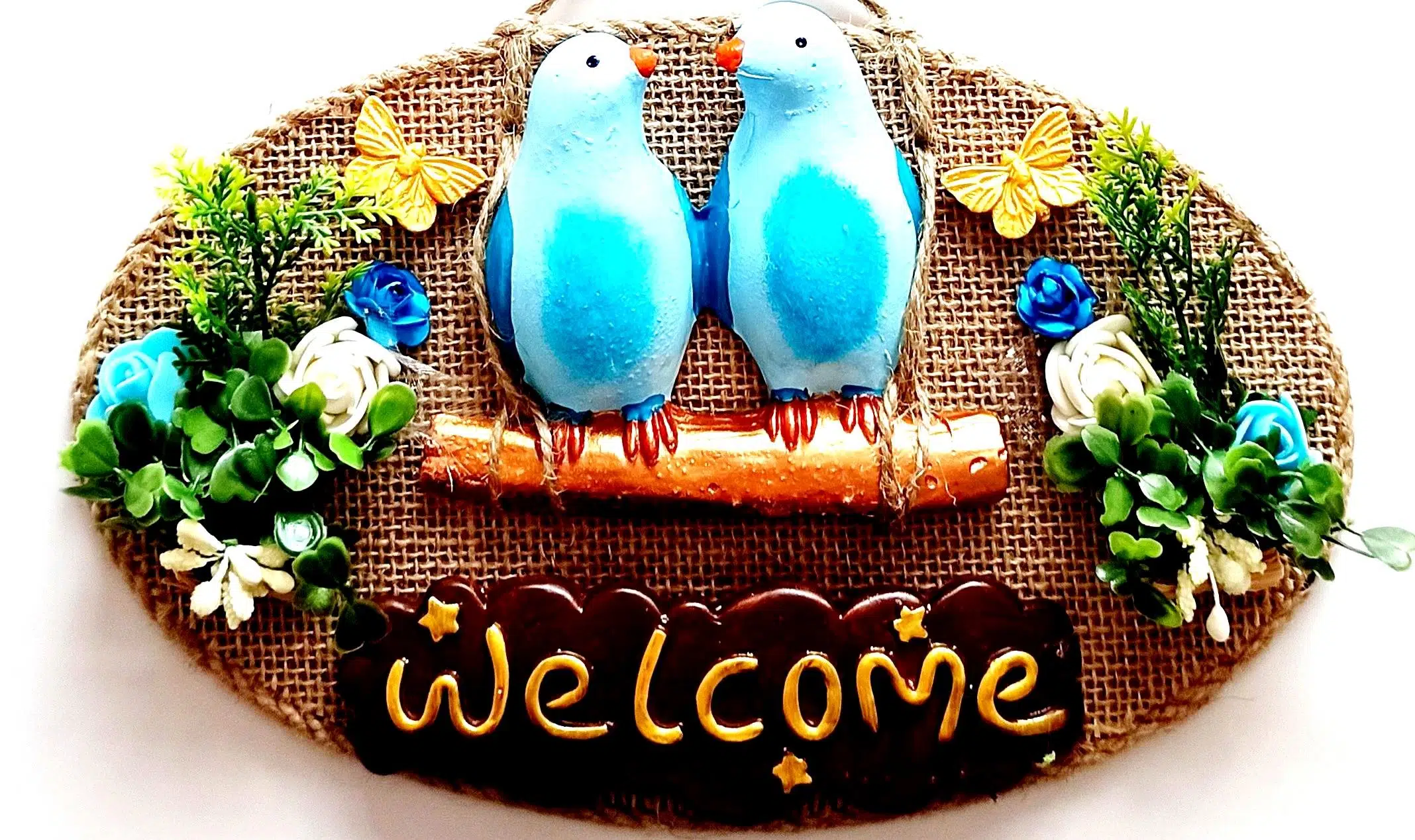| Etiketler | Mavi Kuşlu Çiçekli Welcome Yazılı Kapı Süsü |