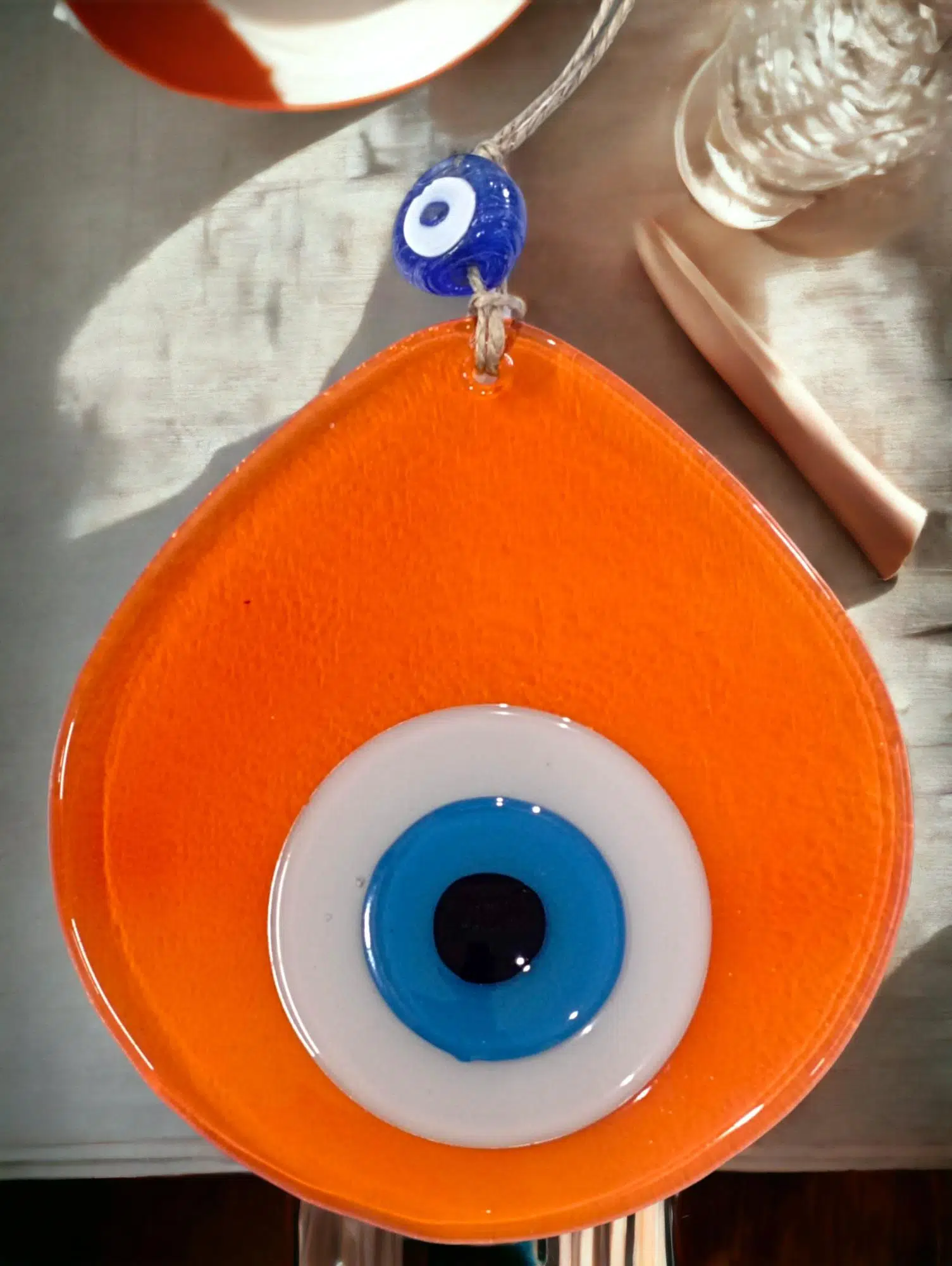 | Etiketler | Mavi Nazar Boncuklu Şeffaf Turuncu Renk Nazar Boncuklu Damla Desen El Yapımı Duvar Süsü |