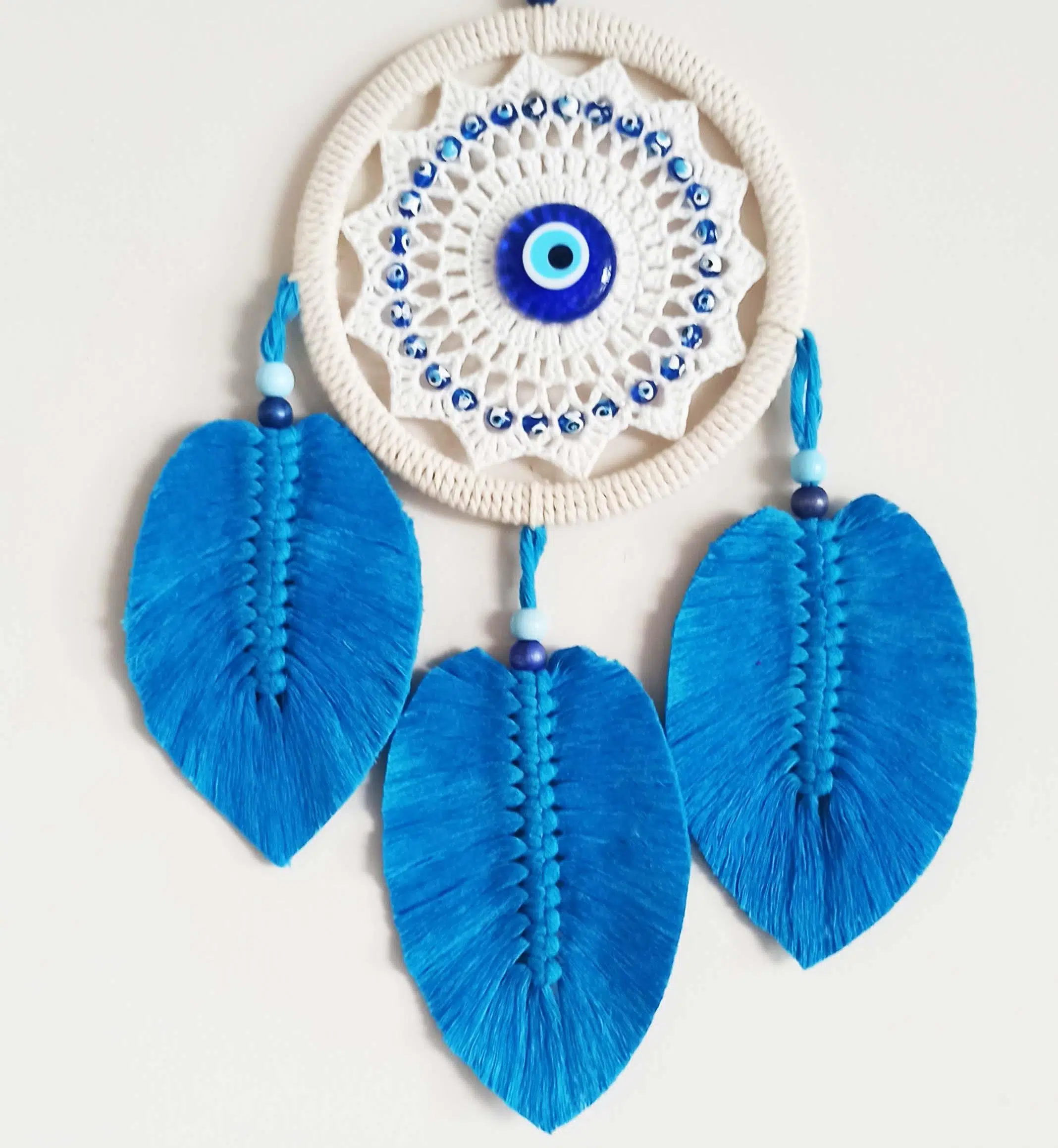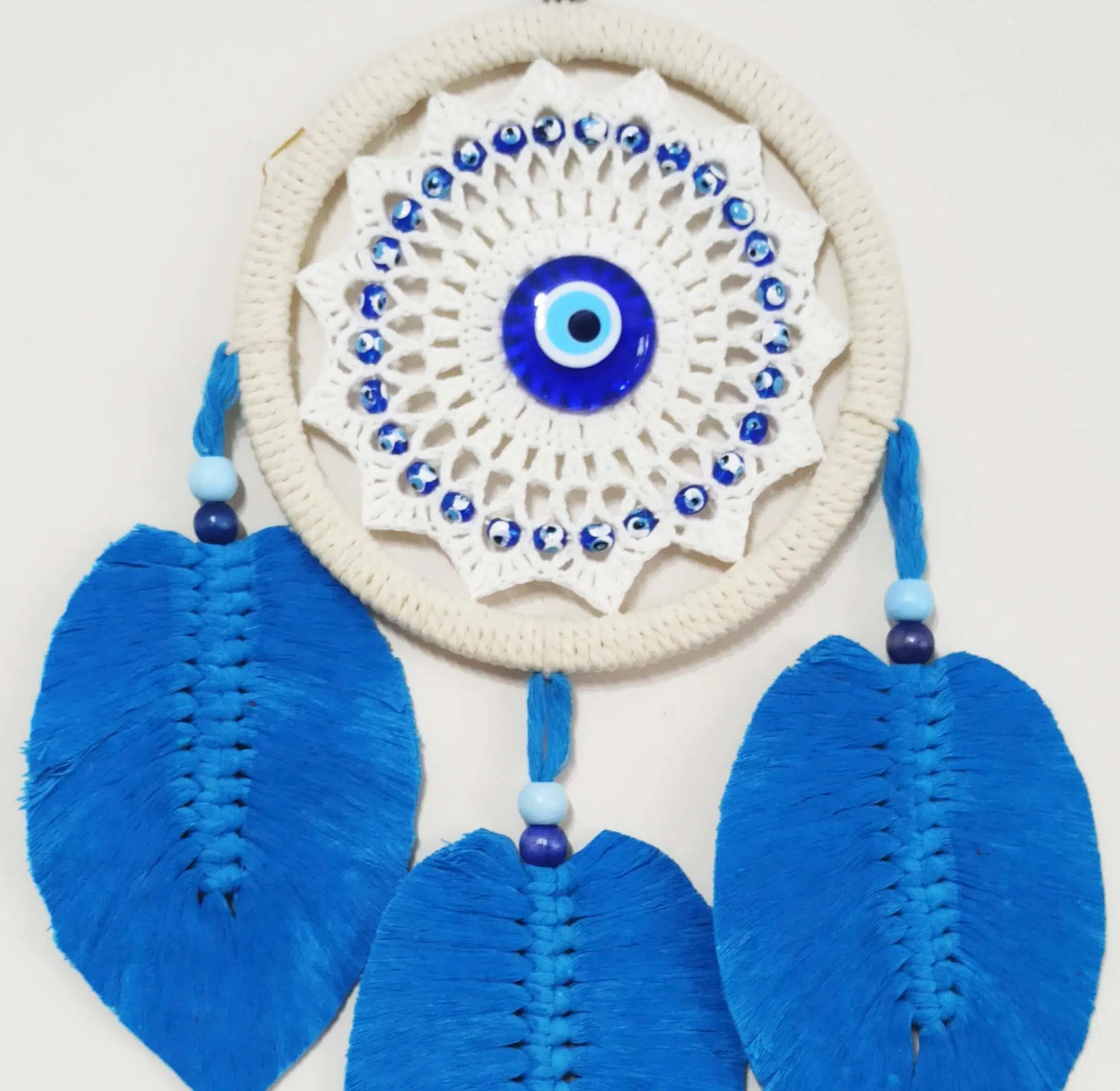 | Etiketler | Mavi Yapraklı Nazar Boncuklu Makrome Duvar Dekoru |