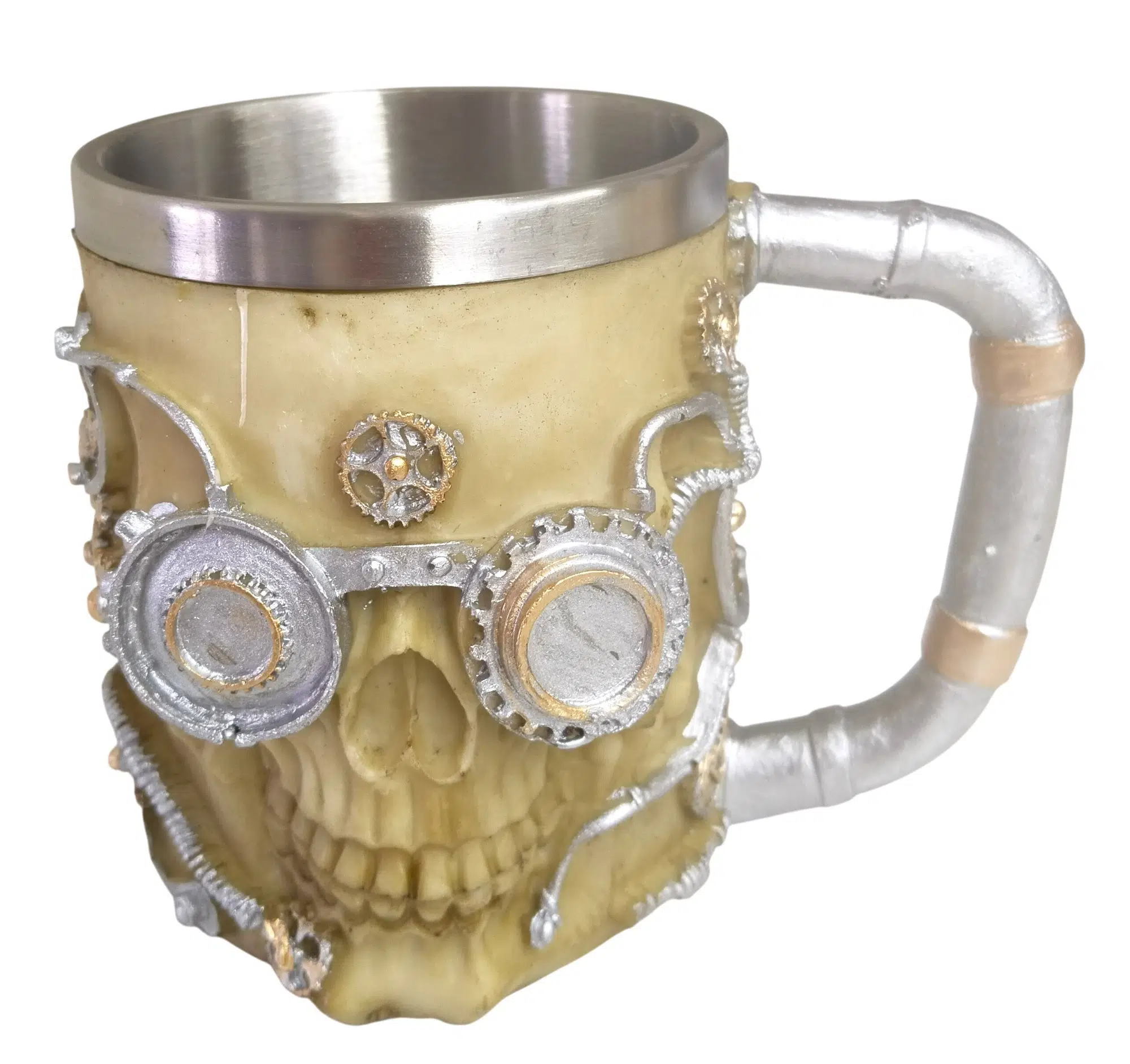 Oyun esnasında veya masanda seni sıradanlıktan kurtaracak o "Legendary" eşya sonunda düştü! Steampunk estetiğiyle mekanik detayların birleştiği bu kafatası kupa, sadece bir bardak değil; masanın en karizmatik boss'u.