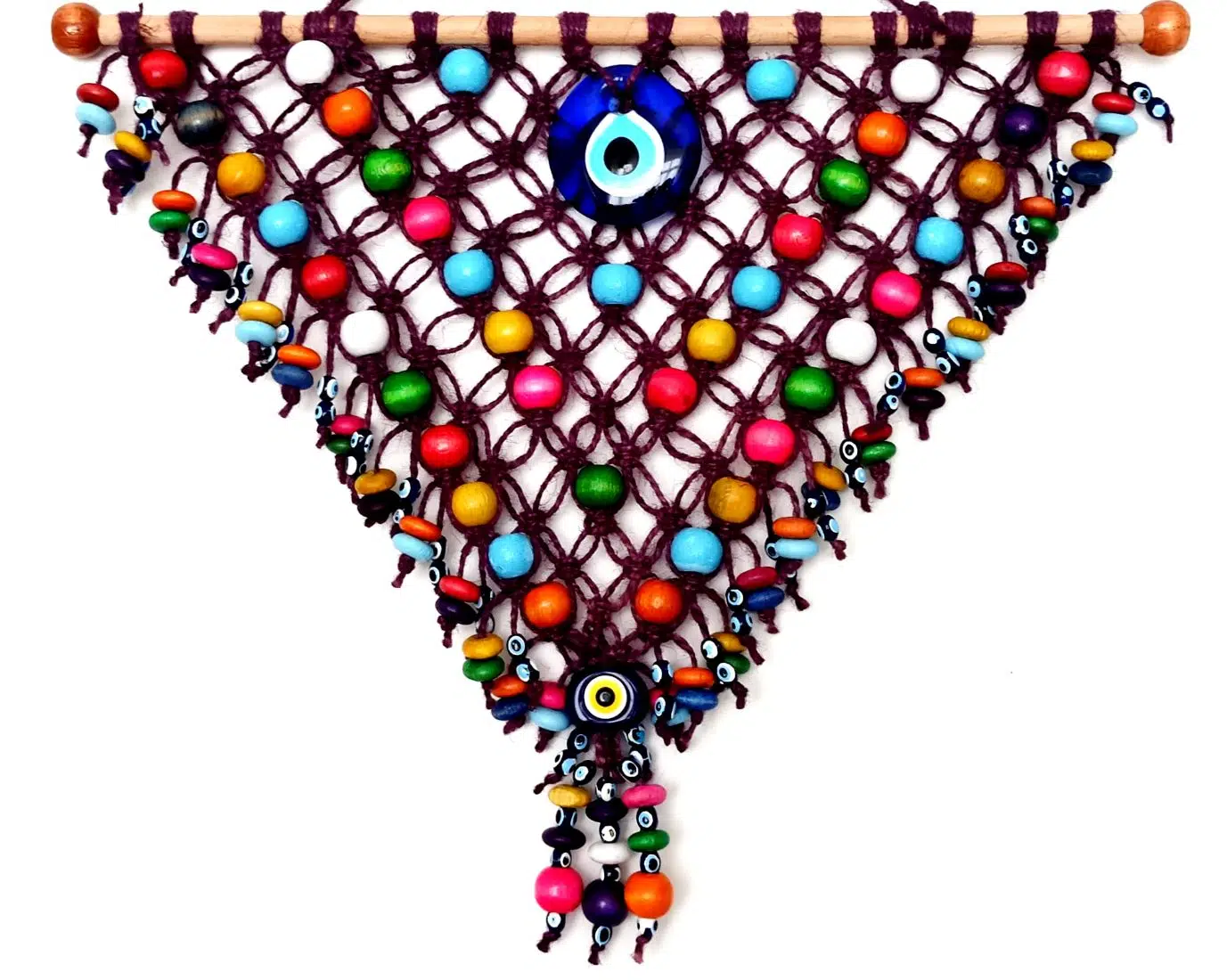 | Etiketler | Mor Renk El Yapımı Üçgen Nazar Boncuklu Duvar Süsü |