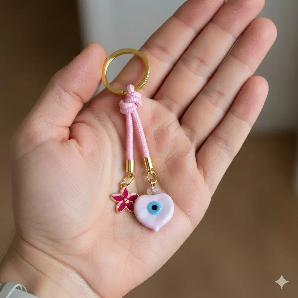 | Etiketler | Nazar Boncuklu Pembe Kalpli Çanta Süsü – El Yapımı İpli Anahtarlık & Çanta Aksesuarı |