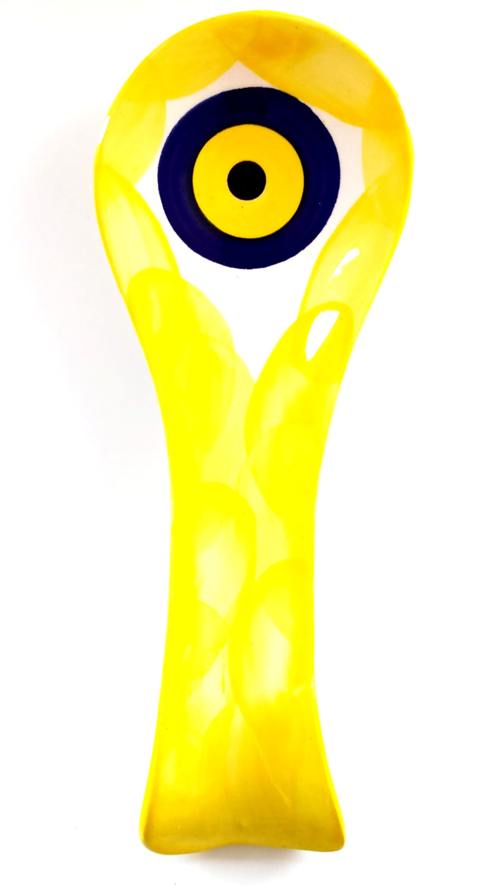 Nazar boncuklu tezgah üstü seramik kaşıklık tamamen el işçiliği ile üretilmiştir. Ürünümüz 9 santimetre eninde, 24 santimetre boyundadır.