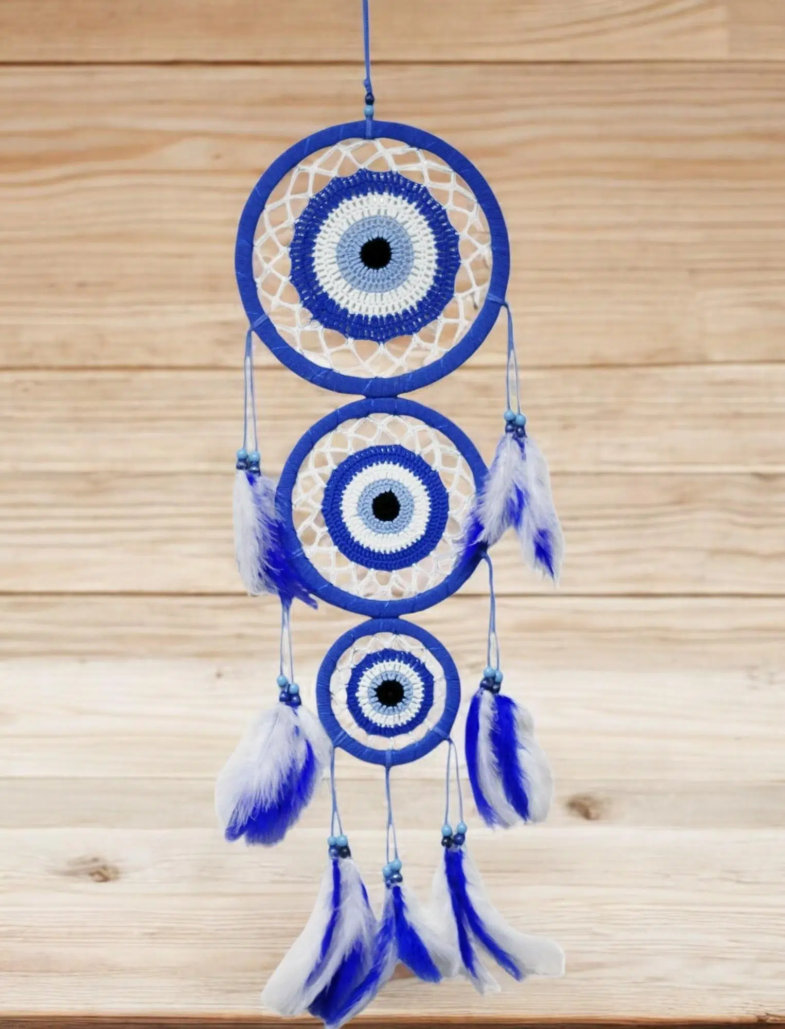 Ürünümüz üç adet çemberden oluşmaktadır. Büyük halka 21 santimetre çapında, orta boy olan 17 santimetre çapındadır. Küçük çember ise 12 santimetre çapındadır. Ürünümüz yaklaşık 88 santimetre boyundadır. Duvar süsümüz kuş tüyleri ile süslenmiştir. Ürünümüzde doğal iplik kullanılmaktadır.