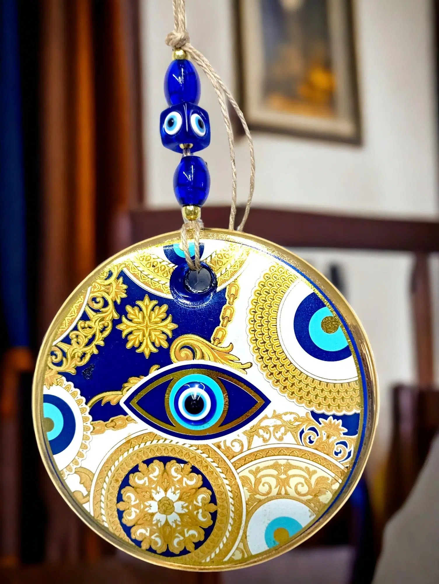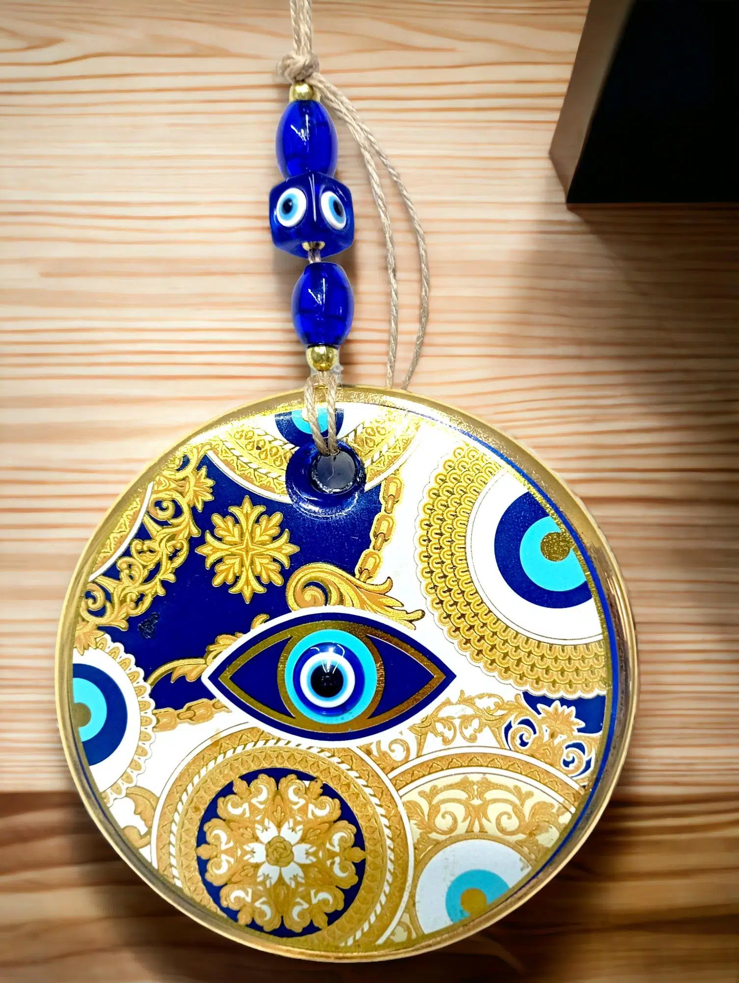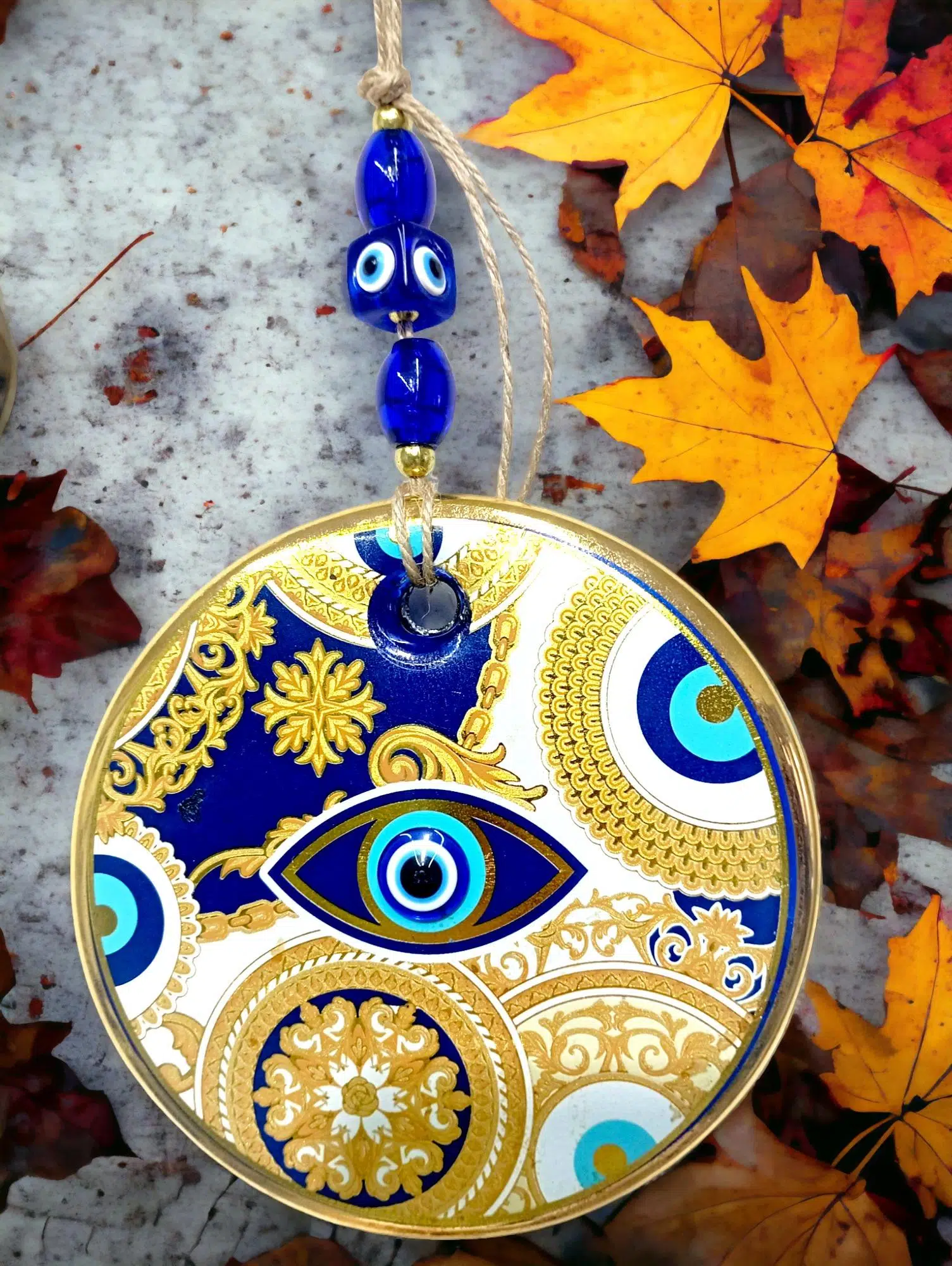EtiketlerSarı Motifli Mavi İşlemeli Nazar Boncuk Gözlü Duvar Süsü