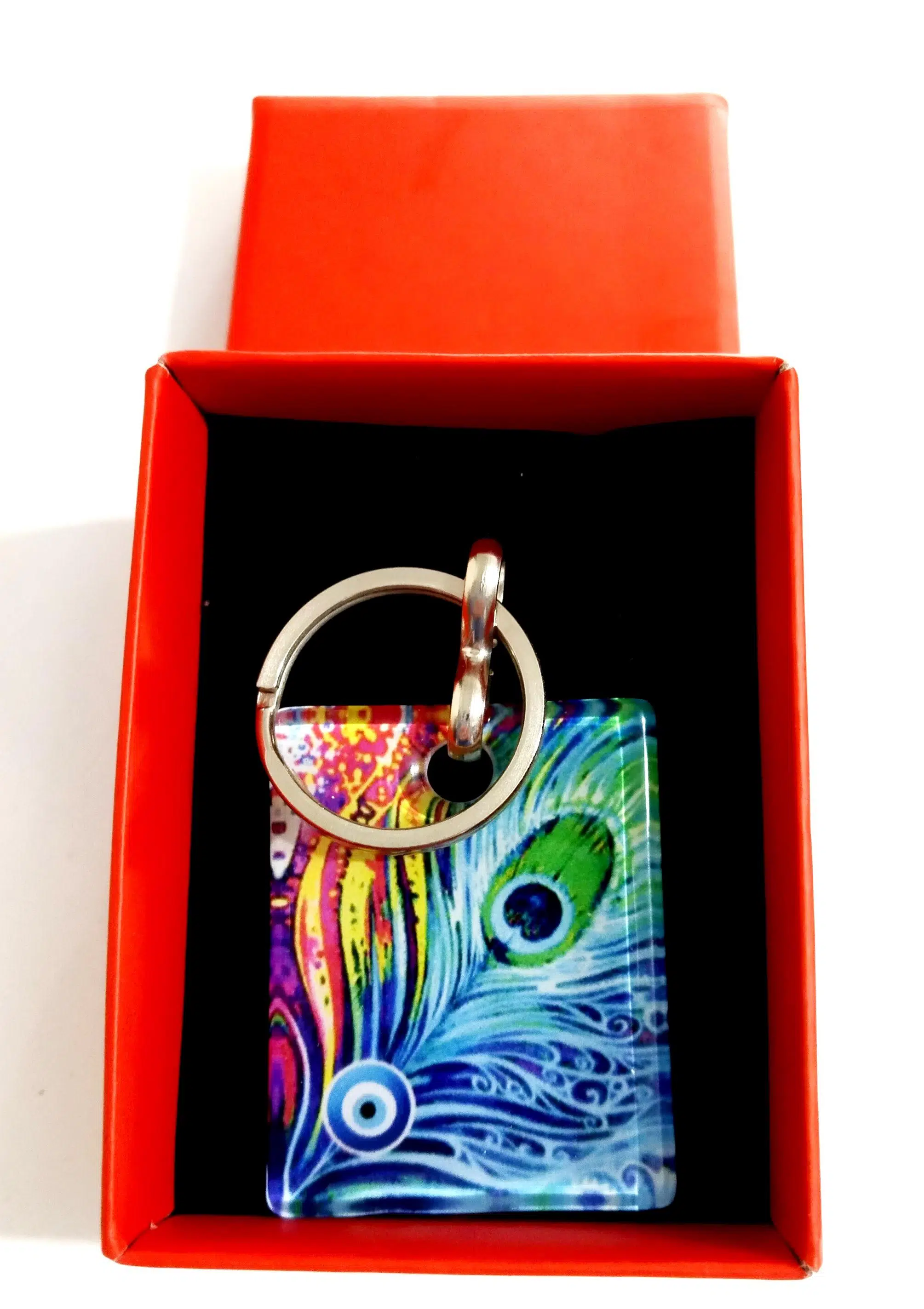 | Etiketler | Tavus Kuşu Tüyü Desenli Füzyon Cam Hediye Kutusunda Anahtarlık |