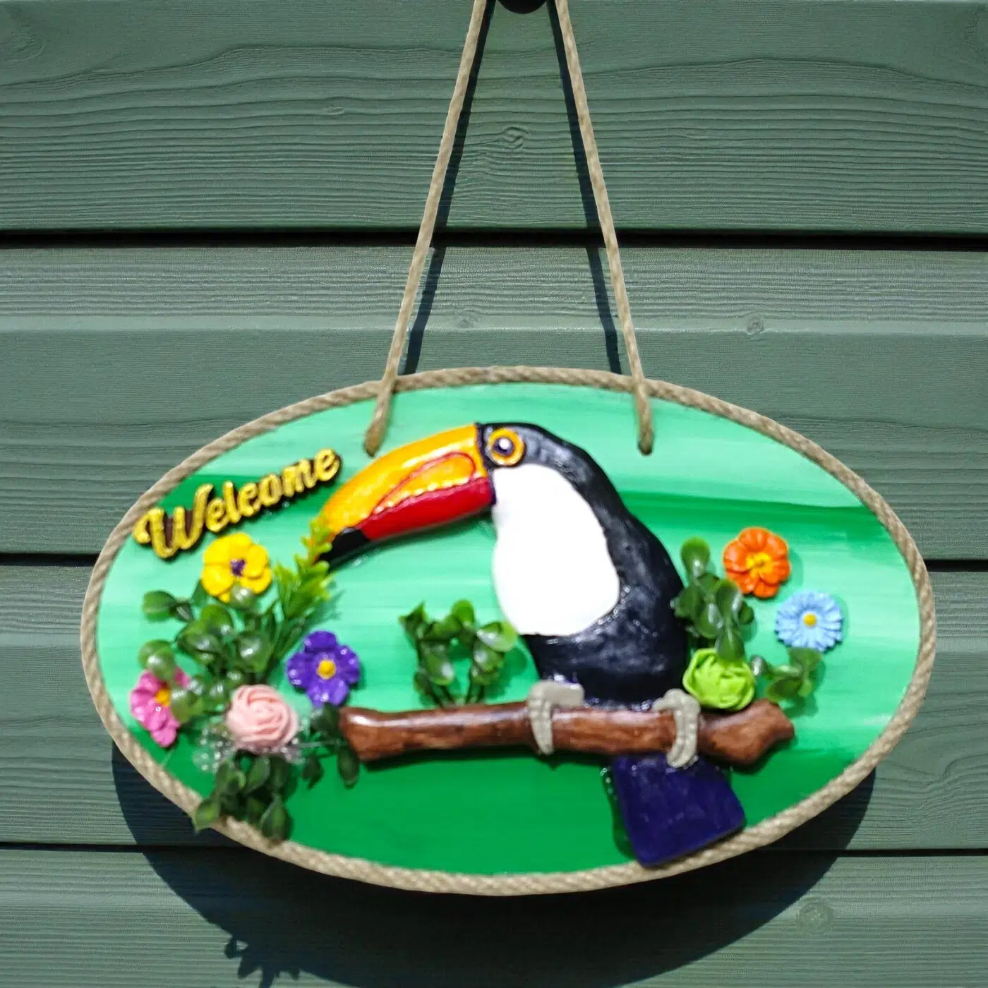 | Etiketler | Tukan Kuşu Figürlü Welcome Yazılı Dekoratif Kapı Süsü - Renkli El Yapımı Dekor |
