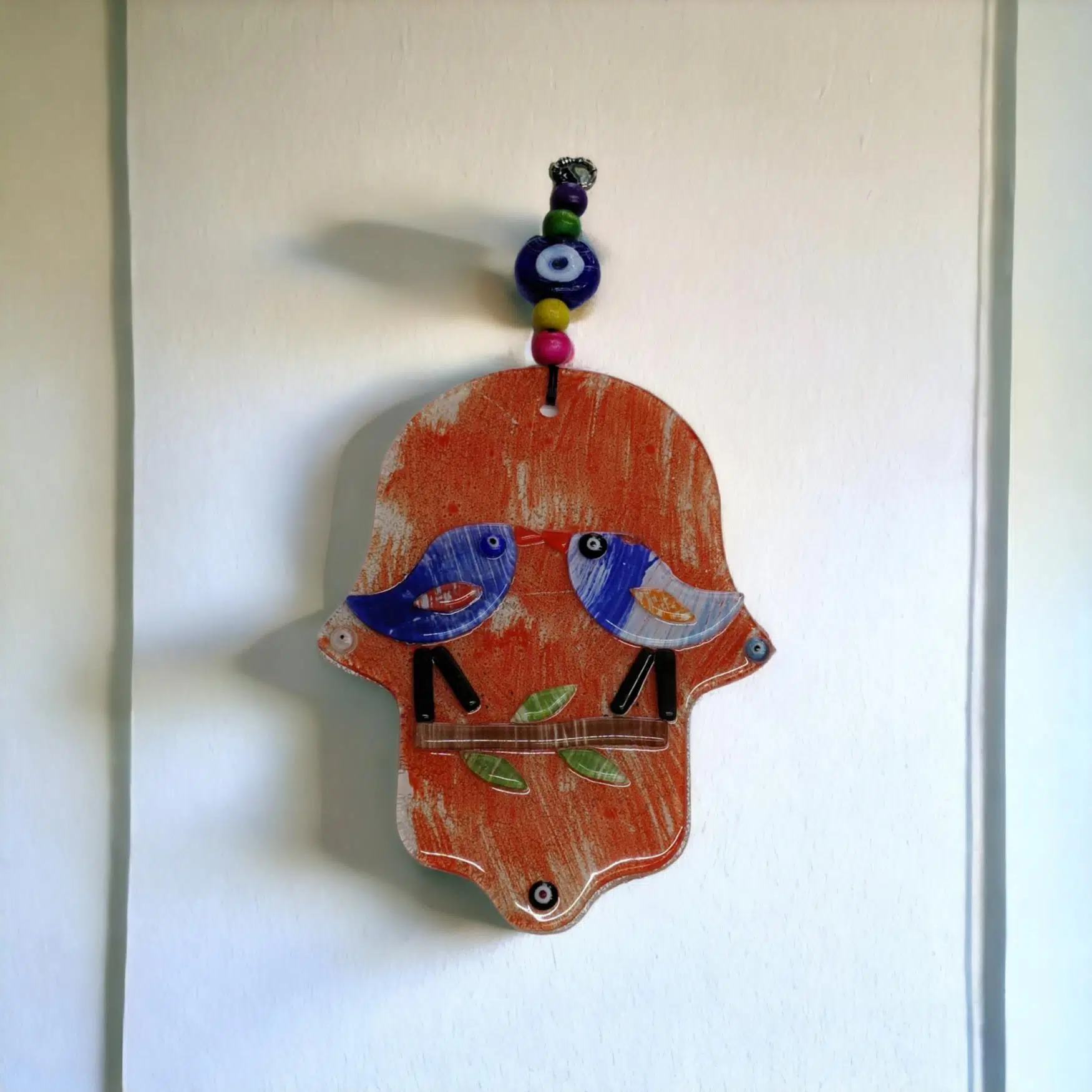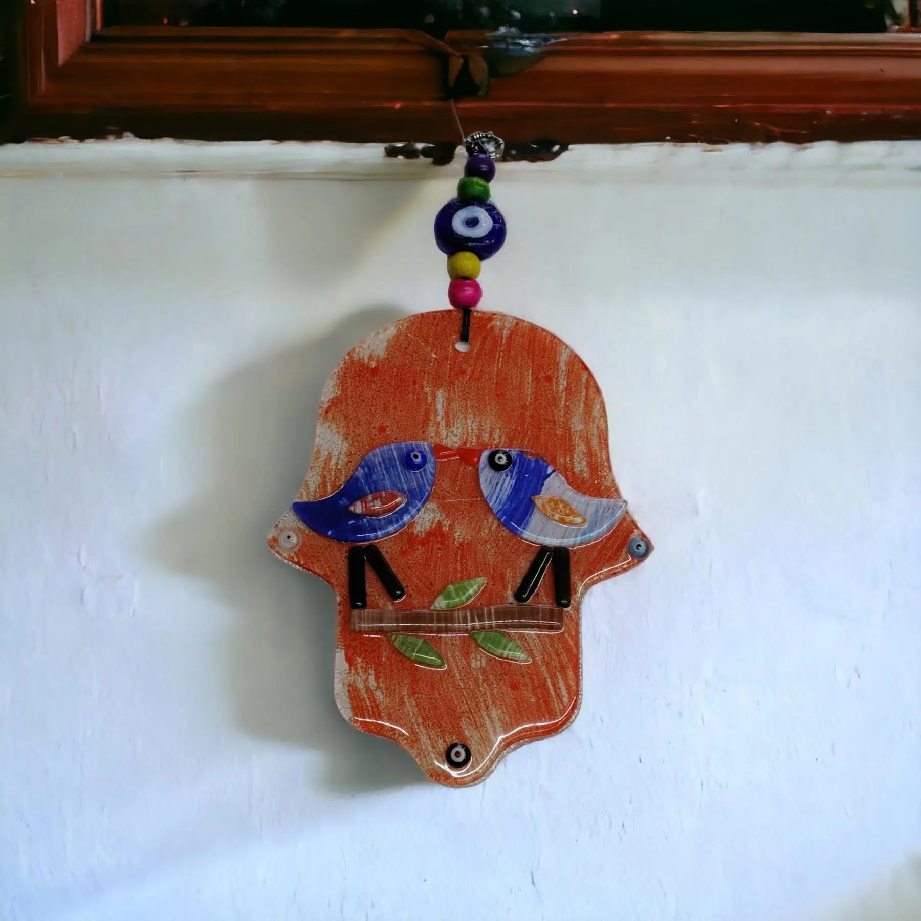 | Etiketler | Turuncu Kuşlu Füzyon Cam Fatma Ana Eli Duvar Süsü Kapı Süsü |
